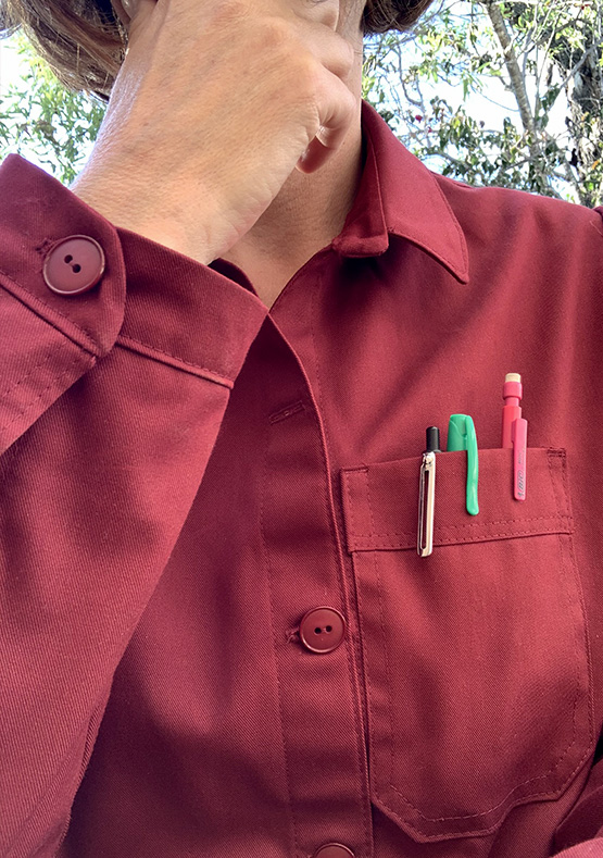 J’ai commencé la couture vers 10 ans pendant des vacances chez mes grands-parents. Un jour que je devais m’ennuyer, ma grand-mère a installé sa machine à coudre (une Bernina, s’il vous plait !), m’a rapidement montré comment enfiler l’aiguille et faire une cannette, apporté un sac de chutes de tissus et m’a lancé « Amuse-toi, ma douce ! ». Les Barbies ont été les premières habillées, en mode essai/erreur. Puis, pour elles, j’ai dessiné des patrons sur du papier journal pour leurs premiers mini manteaux et des ensembles de plage. Vers 16 ans j’ai décidé de coudre des vêtements pour moi, en découvrant les catalogues de patrons du 1er étage du magasin Reine à Paris et l’offre, qui me semblait infinie, de tissus dans les rues alentour, des plus classiques aux plus extravagants et magnifiques wax de l’autre côté du boulevard. J’ai joué avec les vieux tissus, inventé des robes inspiré du XVIIIème siècle, retracé des patrons de magazines de mode des années 1910… Petit à petit, j’ai commencé à modifier les patrons, à apprendre à dessiner ou redessiner des pièces pour que le vêtement me ressemble davantage, comme les manches par exemple.